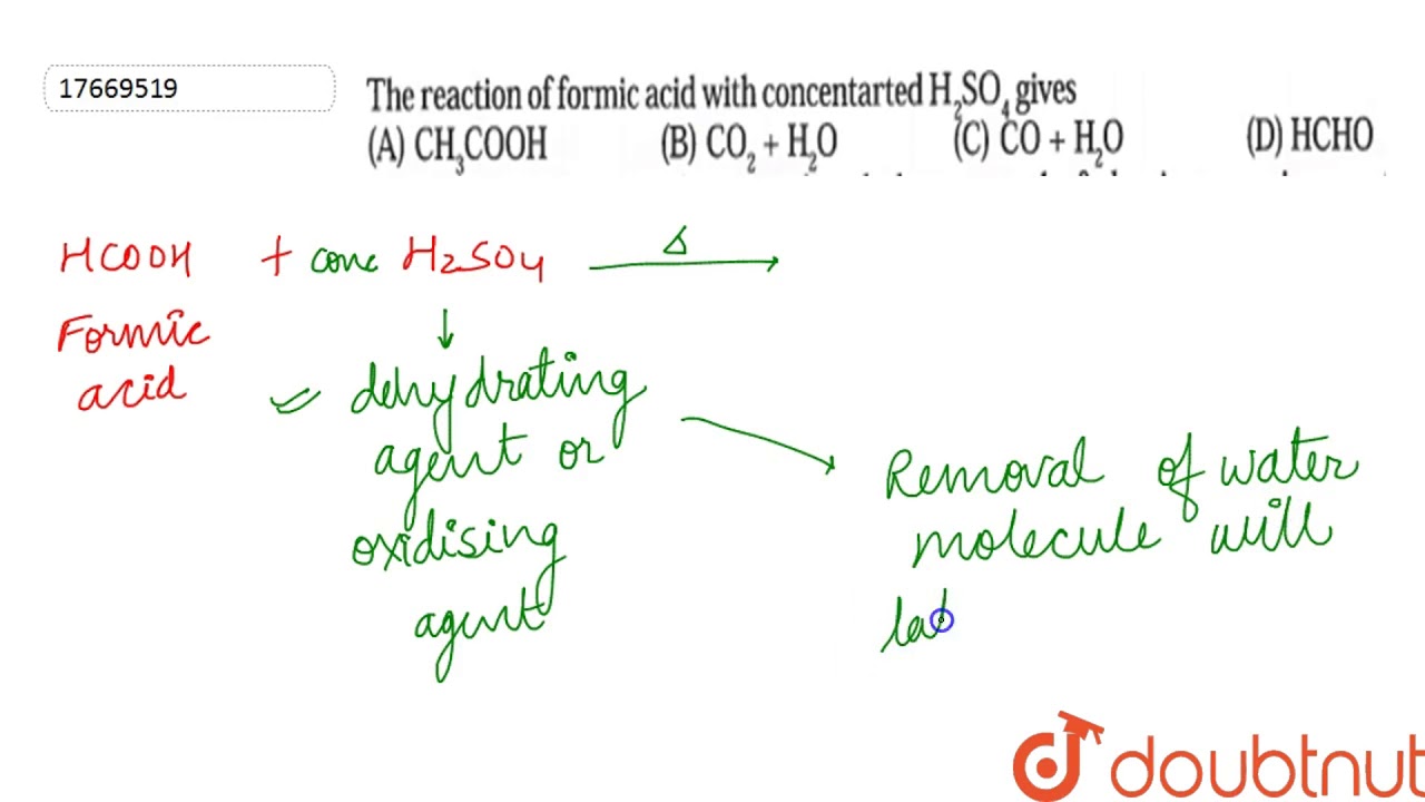 The Reaction Of Formic Acid With Concentrated H 2 So 4 Gives Youtube