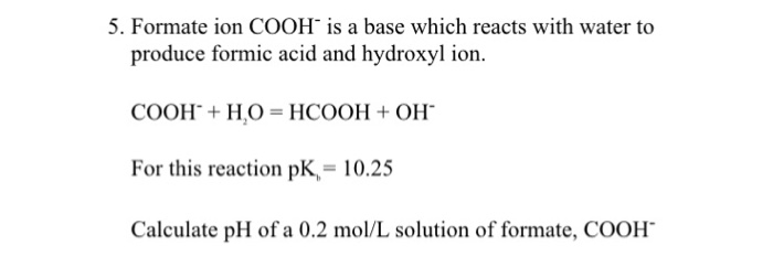 Solved 5 Formate Ion Cooh Is A Base Which Reacts With Water Chegg Com